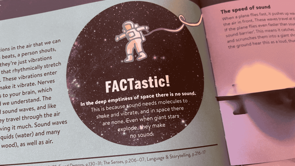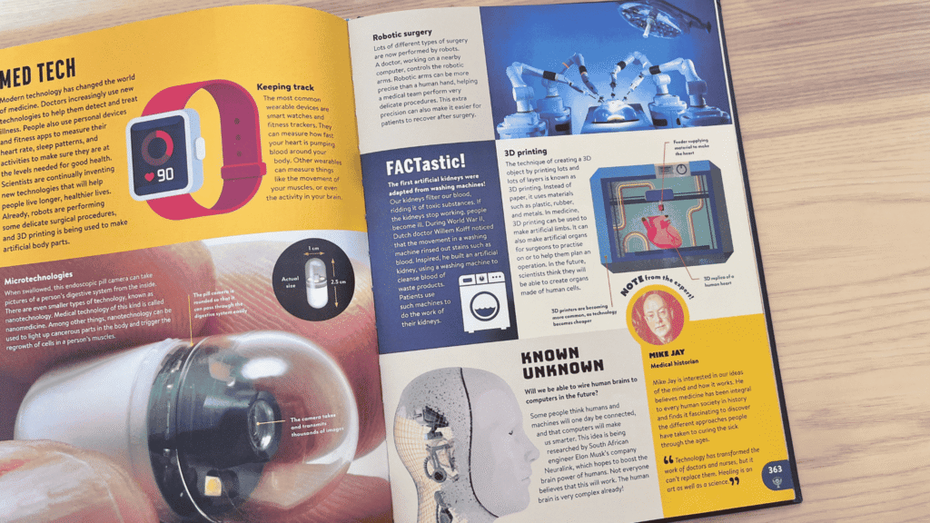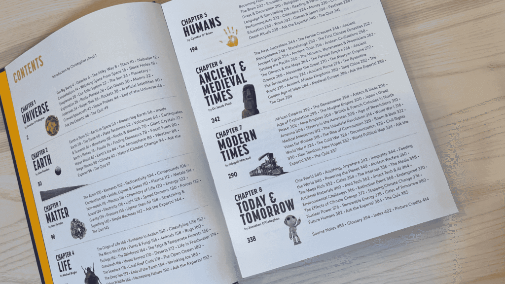 幅広いジャンルを扱っているので、これまで興味がなかったテーマにも自然と目が向きます。英単語や言い回しの勉強にもなります。文字だけでなく、1000以上のイラストや写真、インフォグラフィクスが豊富に使われていて、視覚的にも理解しやすいです。文章は子どもにも分かりやすい一方で、子ども向けすぎず、大人も楽しめるちょうど良いバランスになっています。